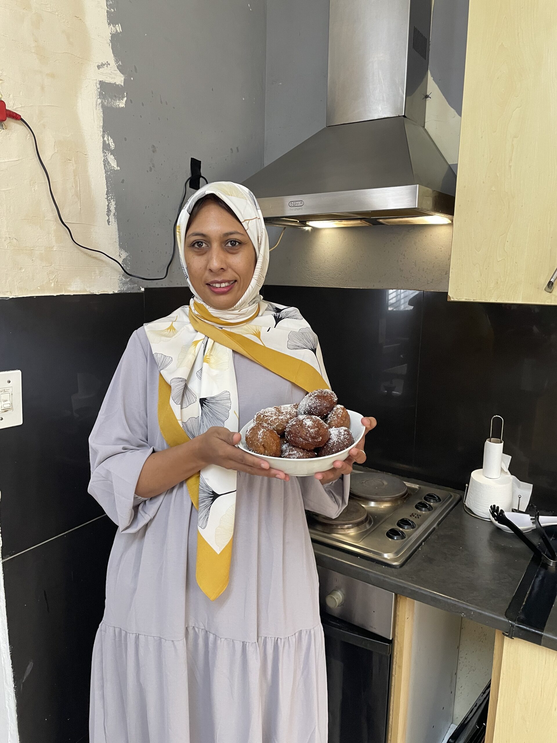 During her two years at home, Rashieda’s older sister, who had long made doughnuts and koesisters, suggested she try baking them herself. Though hesitant at first, Rashieda followed her sister’s guidance, learning the delicate art of twisting dough, balancing syrup, and perfecting the spice. Once confident, she shared her creations in local community chats, and the response was overwhelmingly positive. A year later, she continues to bake every Sunday, supplying her community and keeping the cherished koesister Sunday tradition alive.